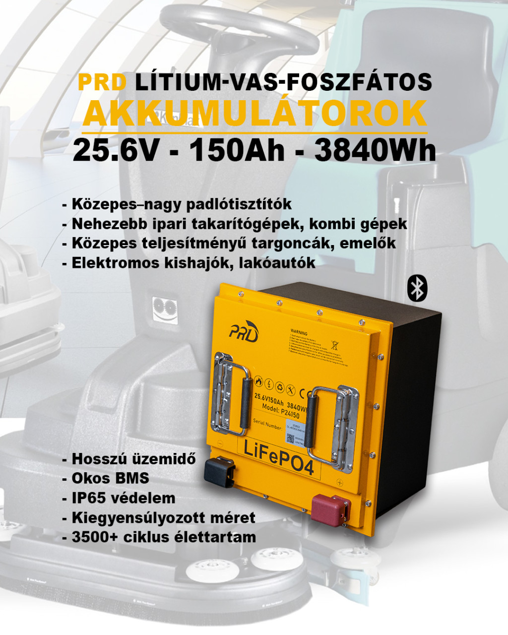 Amennyiben hosszú üzemidőre, nagy kapacitásra és ipari strapabírásra van szüksége, a 150 Ah-s LiFePO₄ akkumulátor ideális választás. Különösen ajánlott nagyobb területű takarításra, két műszakos üzemhez, valamint olyan ipari környezetbe, ahol fontos a gyors töltési lehetőség és a megbízhatóság.