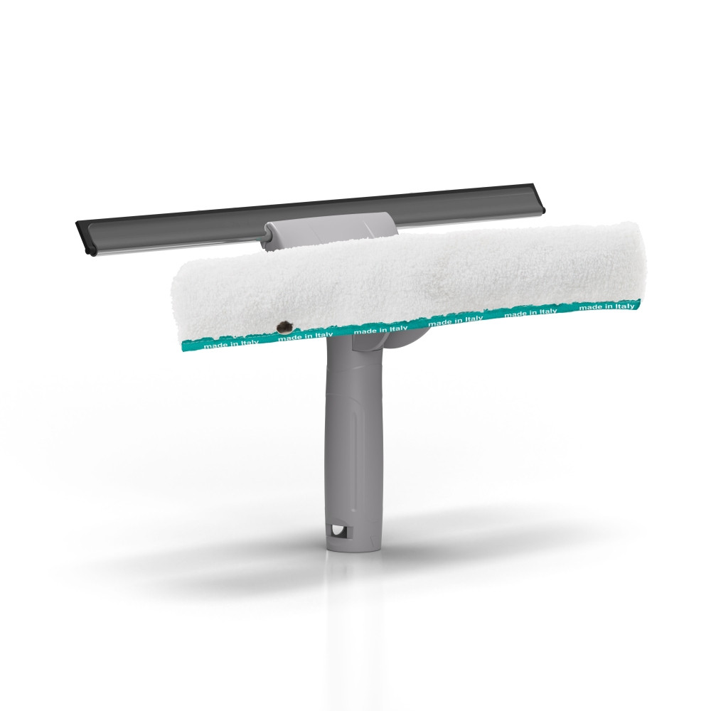 Poliamid ablaktisztító lehúzó cserélhető pengével, rögzítőkaros zárral, Lampo rögzítőrendszerrel, valamint alumínium ablaktisztító tartóval és mikroszálas huzattal. Ideális ablakmosáshoz és szárításhoz egyetlen eszközzel.