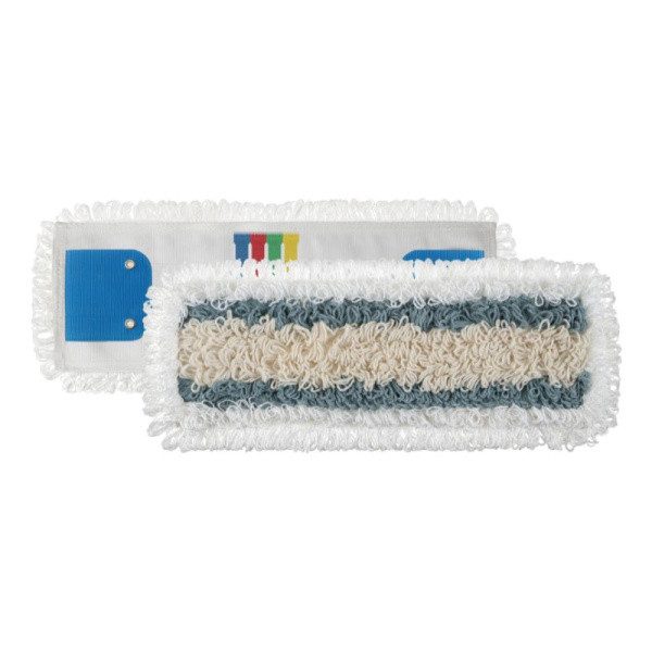 TTS Wet System Tris lapos mop. Mikroszálas, poliészter és pamut lapos mop, hurkolt végekkel, poliészter hordozóval.